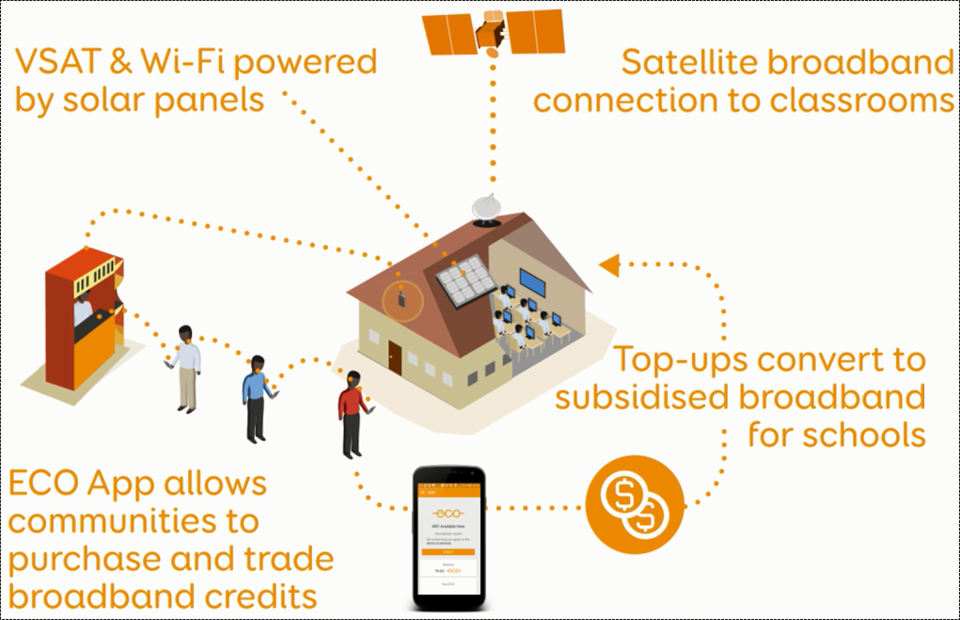 ECO was launched in September 2016 and will continue for five years. This includes three years of evaluating pilot services for schools, Internet cafes and other communities over 1400 sites across six countries in Africa within the coverage of Hylas-4.