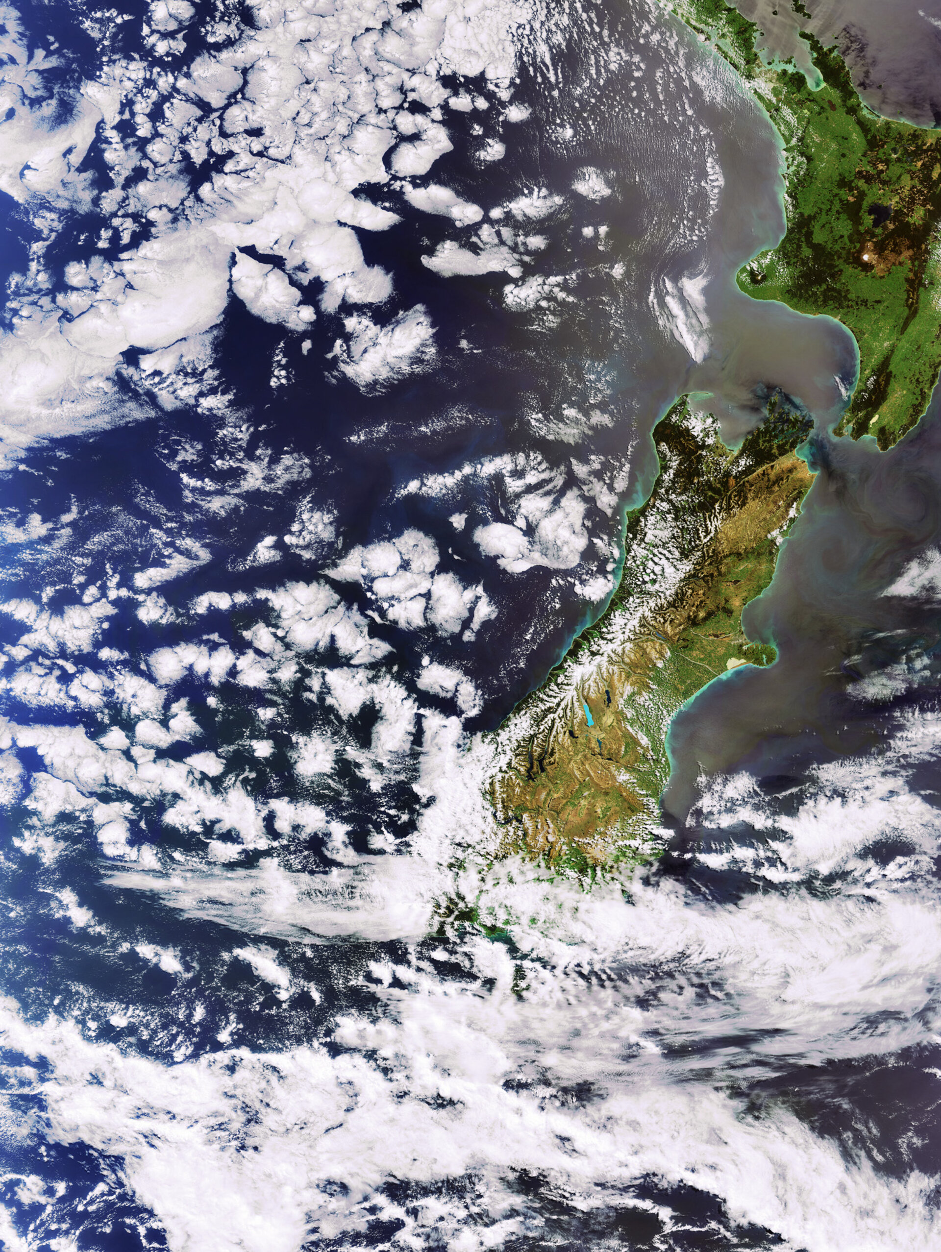 This image highlights the North and South islands of New Zealand as captured by ESA’s Envisat during the spacecraft’s 30 000th orbit of Earth.
