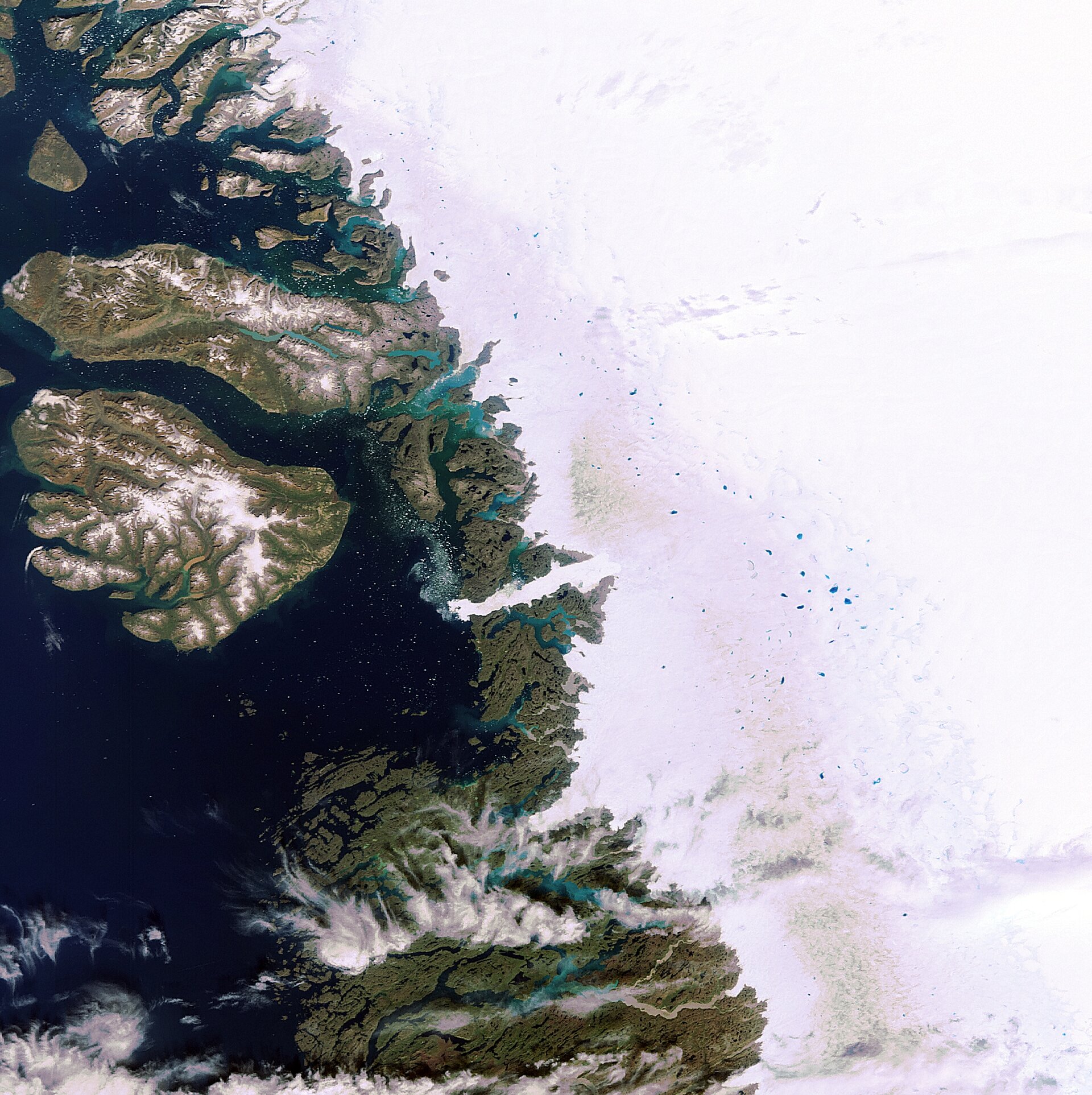 This Envisat image shows part of Greenland’s west coast – home to one of the fastest and most active glaciers in the world, Sermeq Kujalleq.