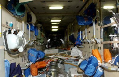 ESA astronaut Roberto Vittori on board the International Space Station during the Eneide mission, 2005.