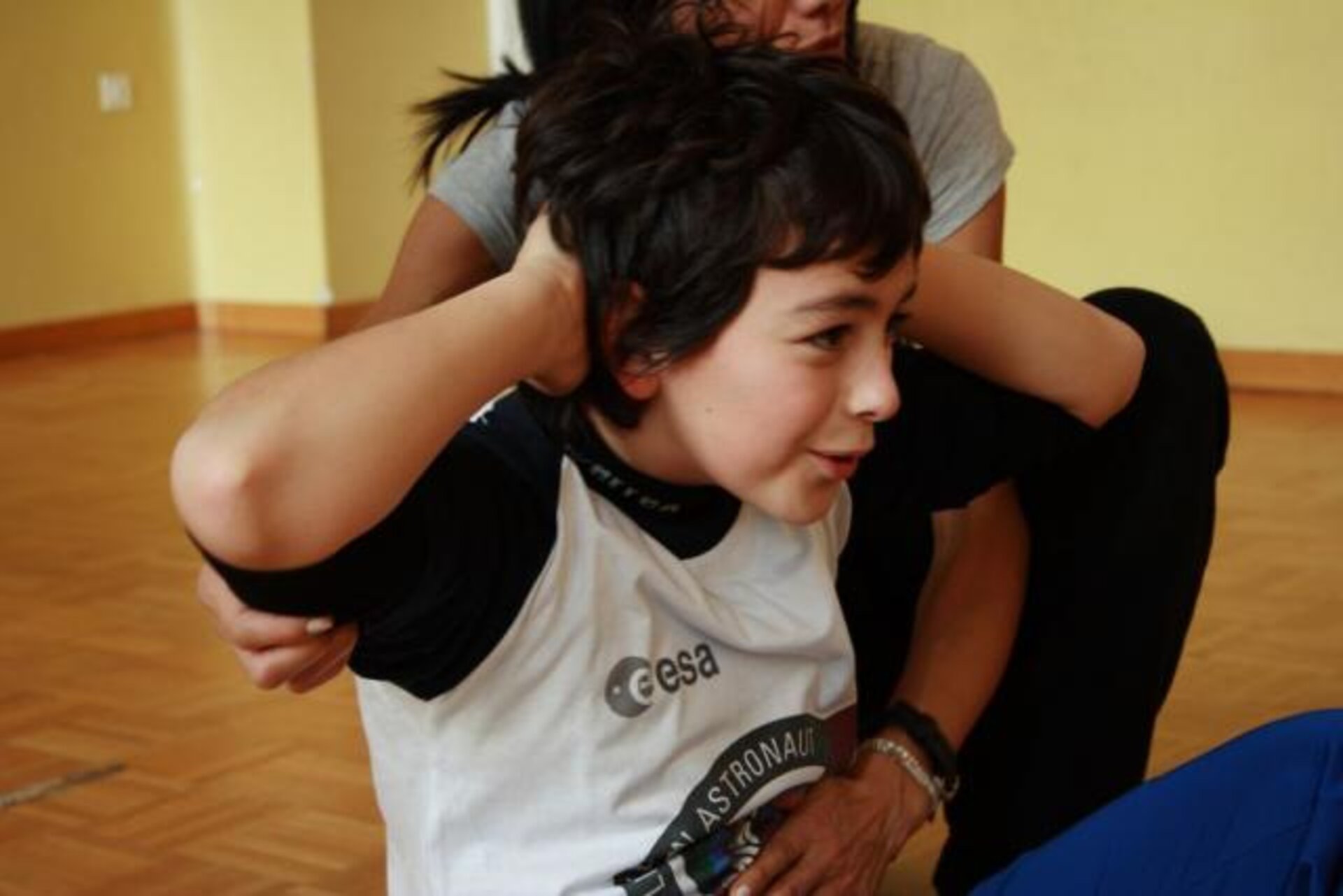 Students at Media Sandro Pertini school in Savona, Italy, participate in the Building an Astronaut Core activity.