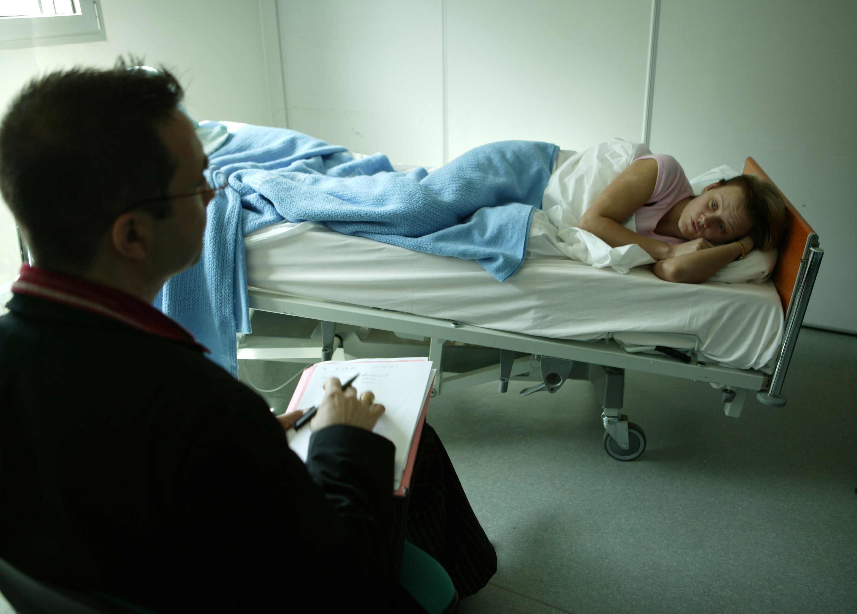 Bedrest volunteer in bed during a study conducted in 2005.