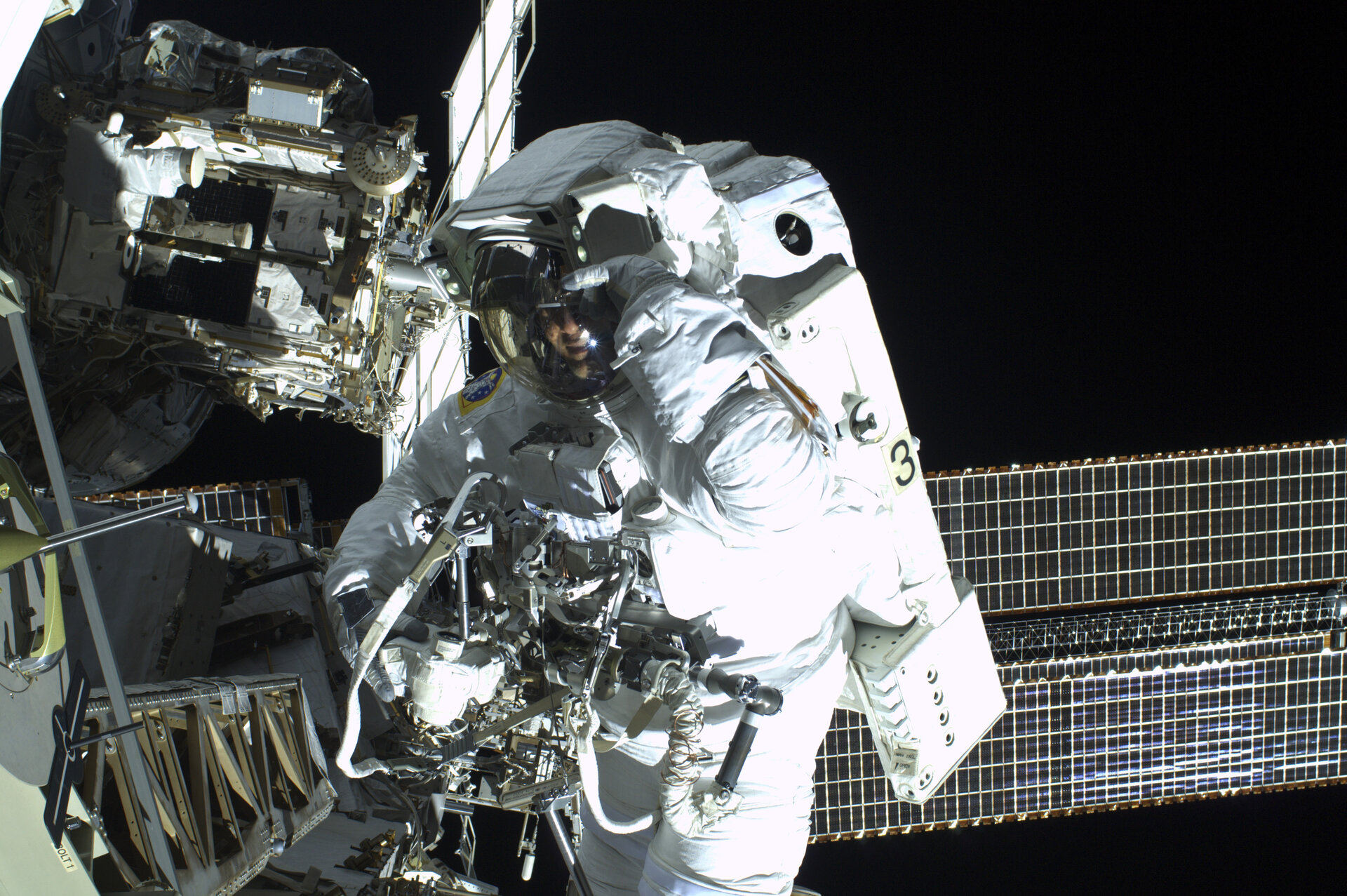 This was the first of two Expedition 36 excursions to prepare the International Space Station for a new Russian module and perform additional installations on the station’s backbone.