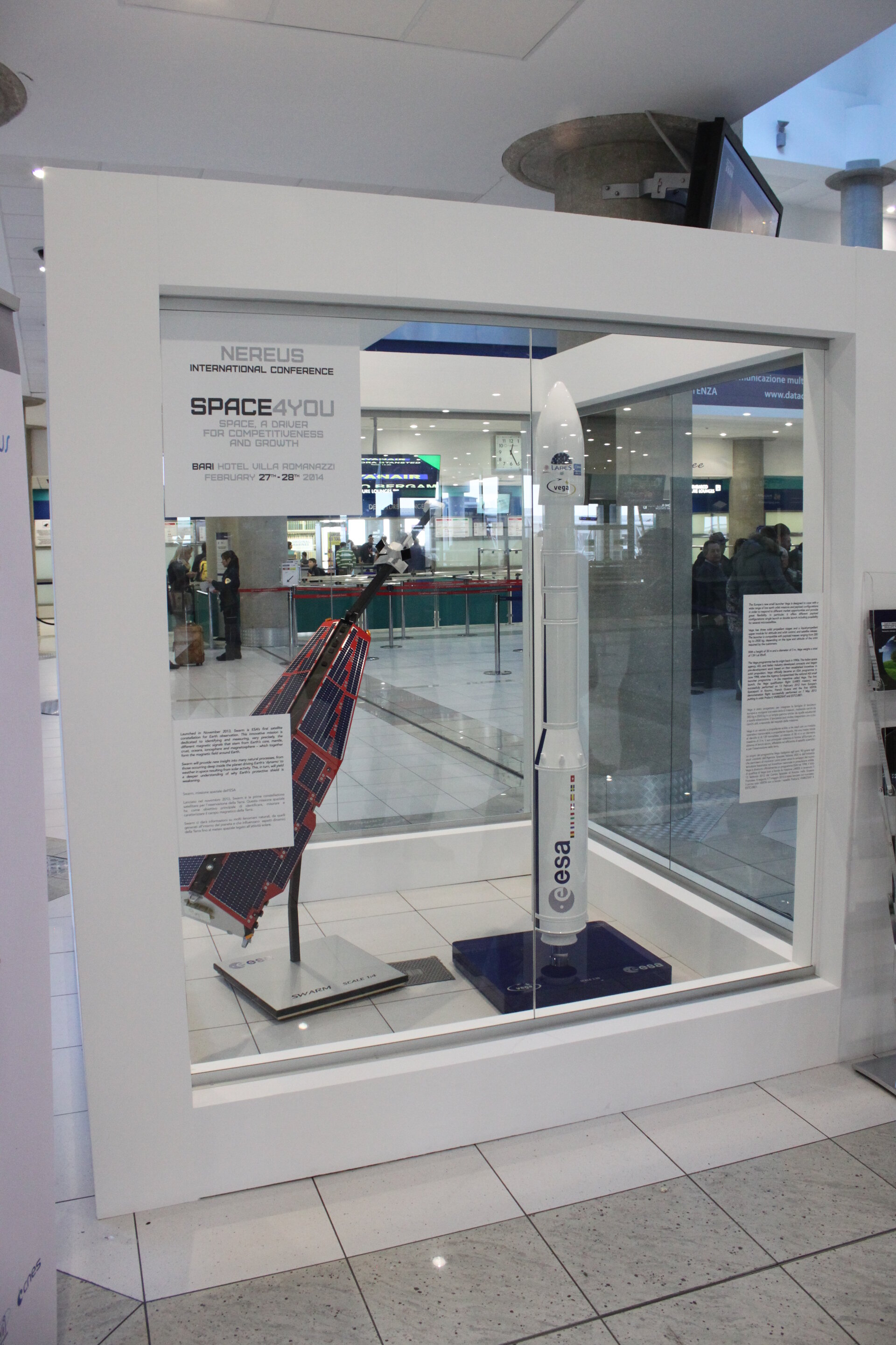 ESA is exhibiting Vega and Swarm models from 26 February to 7 March 2014 at the Karol Wojtyla airport in Bari, the main city of the Apulia Region, as part of the Nereus Space4You conference.