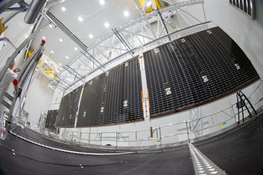 During testing, the five panels were supported from above to simulate the weightlessness of space.