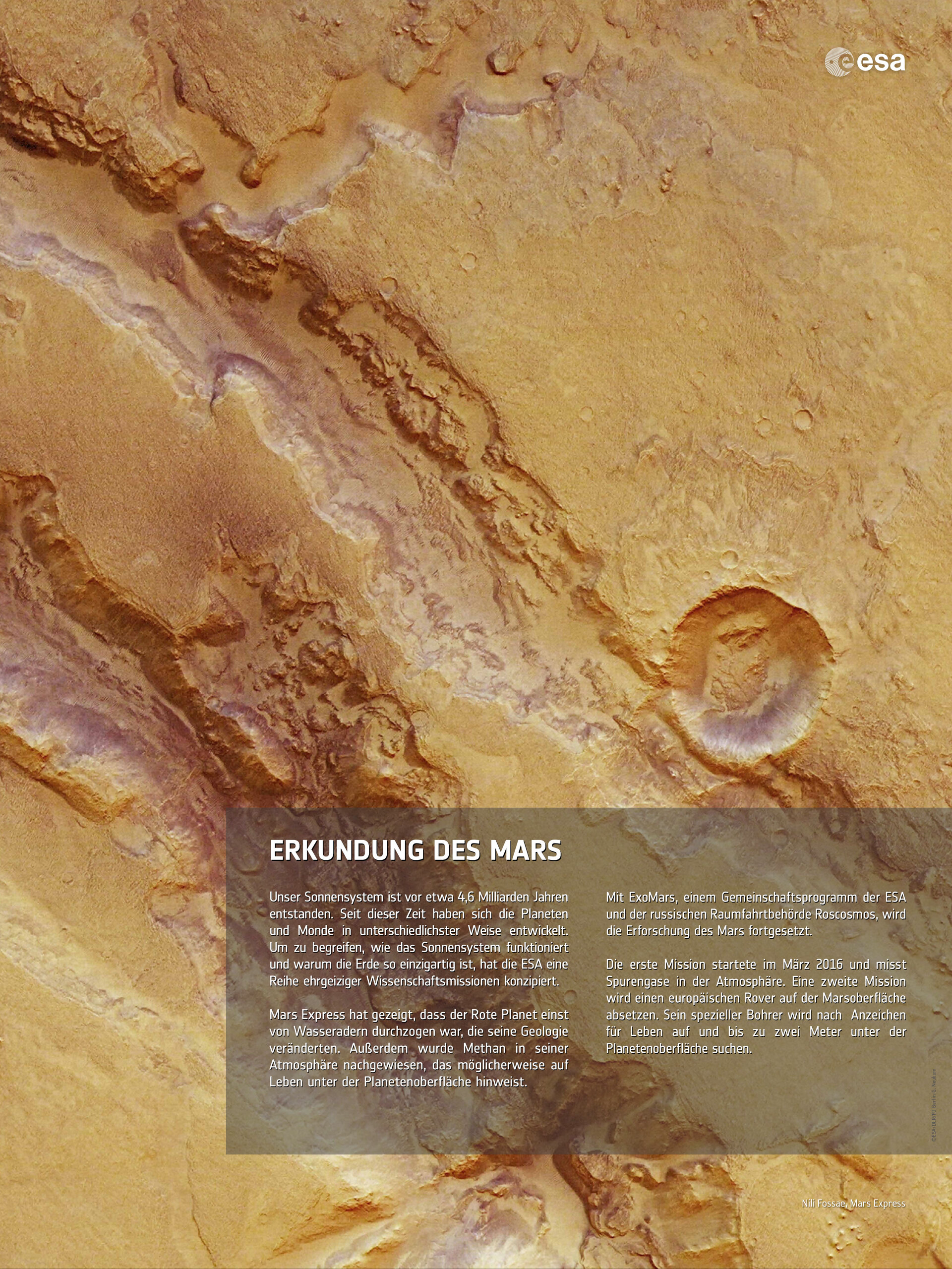 Mars Express hat gezeigt, dass der Rote Planet einst von Wasseradern durchzogen war, die seine Geologie veränderten. Außerdem wurde Methan in seiner Atmosphäre nachgewiesen, das möglicherweise auf Leben unter der Planetenoberfläche hinweist.