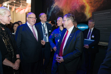 Parlimentarian's Day in the Space Pavilion at the Berlin Air and Space Show, on 25 April 2018.