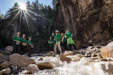 Pangaea trainees reach the top of the crater Montaña Blanca in Lanzarote, Spain. The main focus of the third session of Pangaea is volcanism.