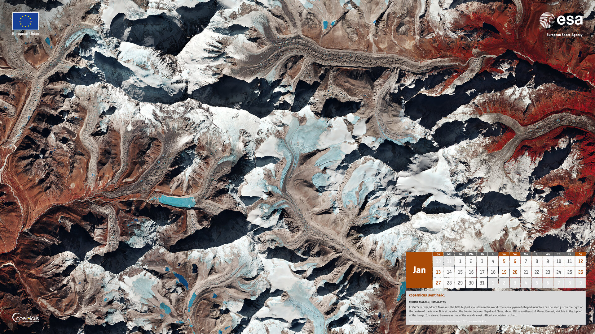 Download the 2019 Copernicus Sentinels calendar. Each month offers a spectacular view of our home planet captured by one of the Sentinel satellites.