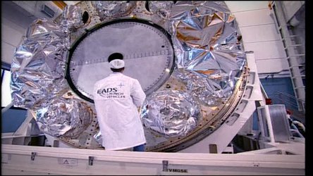 3:32 Who delivers the satellites into space? When testing in ESTEC has been completed the satellite is packed for transport. A team of specialists accompany it to prepare it for launch. Dependent on the mission the satellite is put into orbit by an Ariane 5, a Space Shuttle or another launch vehicle, e.g. Soyuz rocket.