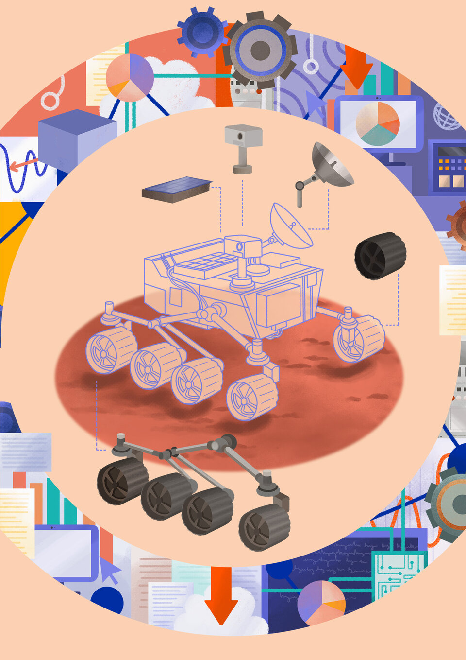 Let’s start with systems engineering. Many separate elements go into making a space system, with individual subsystems developed by specialist teams. System engineers focus on the space system as a whole. By incorporating needs and requirements, they design the architecture of a system, define its building strategy and oversee the integration of subsystems, as well as the verification and validation of the overall system, to form the final result.
