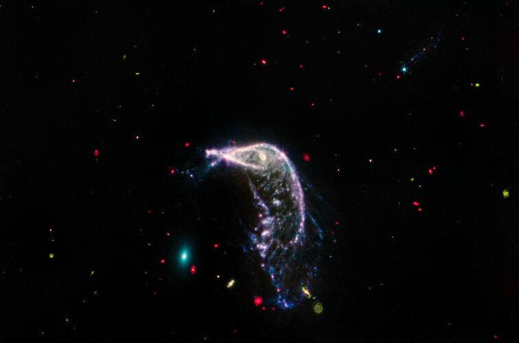 Interacting galaxies Arp 142 (Hubble and Webb image)