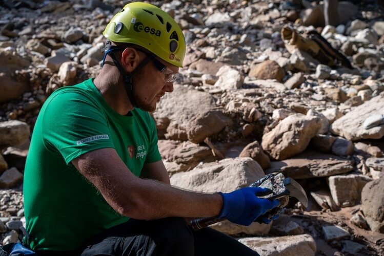 Alexander Gerst untersucht Felsen