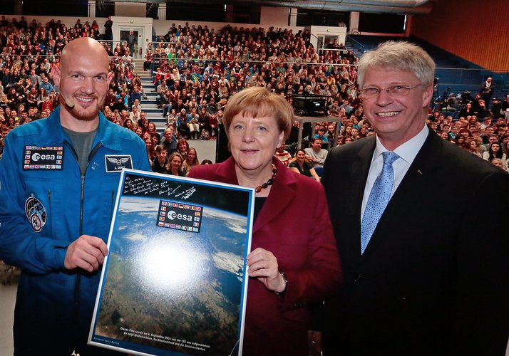 German Chancellor Angela Merkel with ESA's Alexander Gerst…