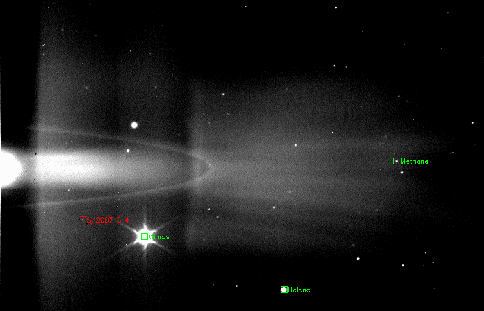 "We detected the 60th moon orbiting Saturn using the Cassini spacecraft's powerful wide-angle camera," said Murray, a Cassini imaging team scientist. "I was looking at images of the region near the Saturnian moons Methone and Pallene and something caught my eye."