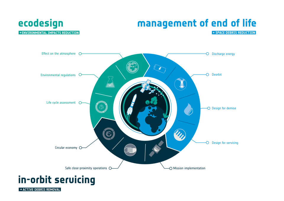 Since the beginning, ESA Clean Space initiative has been systematically considering the entire life-cycle of space activities, from the early stages of conceptual design to the mission’s end of life – and even beyond, to removal of space debris.