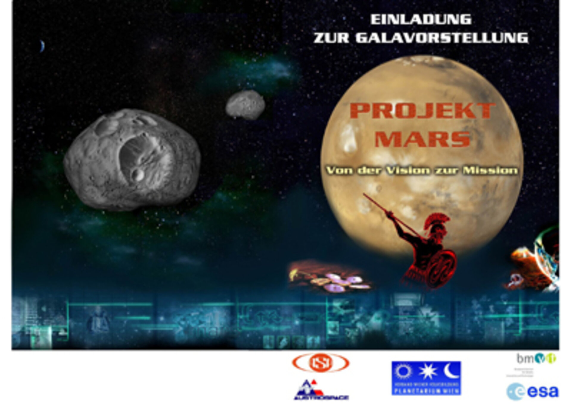Drei Wochen vor dem spannenden interplanetaren Weihnachts-Medien-Event lädt Vizekanzler Hubert Gorbach, Bundesminister für Verkehr, Innovation und Technologie, Journalisten sowie Kommunikations-Fachleute zu einer besonderen Forschungsreise zum Roten Planeten in das Wiener Planetarium ein. Höhepunkt der Veranstaltung wird die Premiere der einzigartigen Multimedia-Show „Projekt Mars” sein.