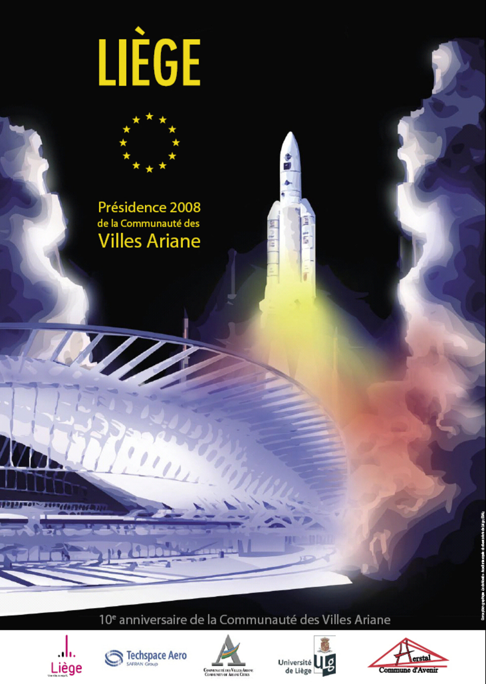 Cette année, Ariane 5 constitue la vedette de Liège qui a l’insigne honneur de présider la CVA (Communauté des Villes Ariane). Durant 2008, la fusée européenne doit voler à sept reprises pour lancer une douzaine de satellites, dont le vaisseau « Jules Verne » (à partir du 8 mars) chargé de ravitailler la station spatiale internationale.