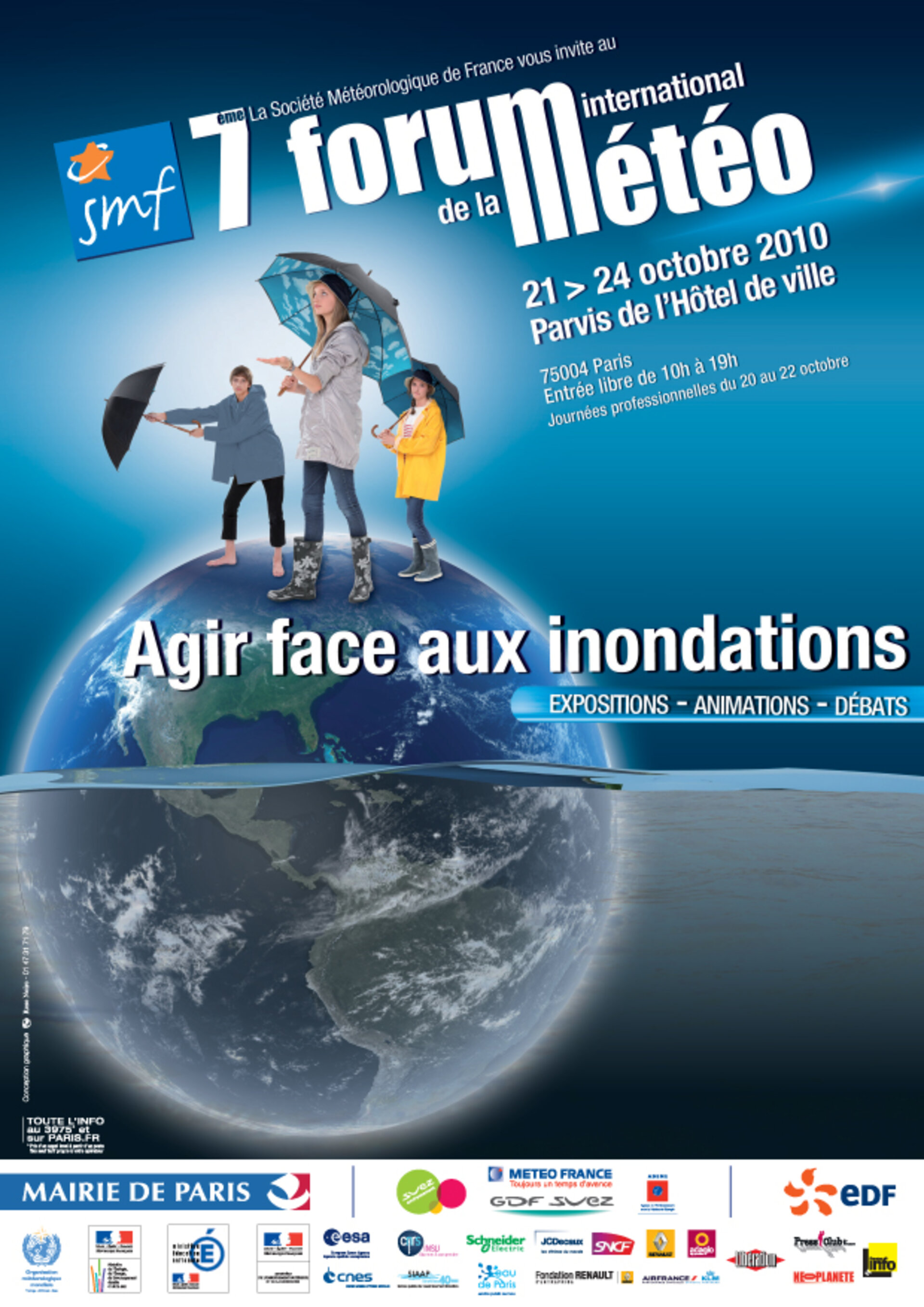 La 7e édition du Forum international de la météo, organisé par la Société météorologique de France, se tiendra du 21 au 24 octobre sur le Parvis de l'Hôtel de Ville de Paris. Il proposera expositions, animations et ateliers pédagogiques aux visiteurs.