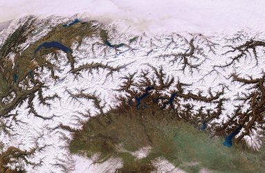 Veduta di parte dell'arco alpino e dei laghi lombardi